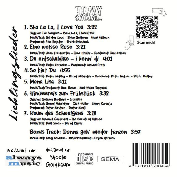 Auf der CD befinden sich 7 Cover-Songs, die zu meinen absoluten Lieblingsleider gehören - was dem Album auch den Namen gegeben hat. Und als Bonus-Track habe ich nochmals meinen eigenen Song "Donna geh wieder tanzen" aufgenommen. Donna geh wieder tanzen habe ich in Erinnerung an Andreas Fulterer und sein Lied "Donna blue" geschrieben.