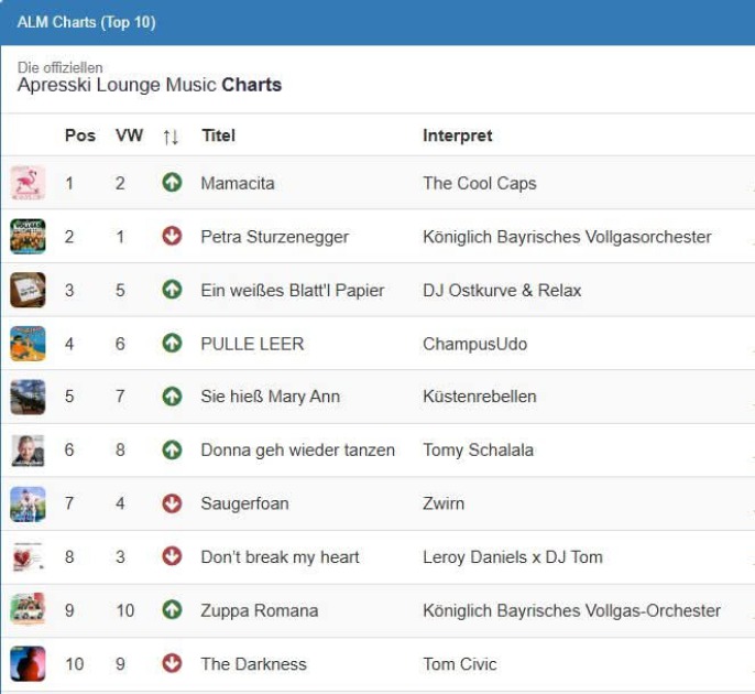 Bei www. apresski-lounge.de hat sich Donna, von meinem neuen Album LIEBLINGSLIEDER, jeweils in der Kategorie Charts und Schlager Charts in die Top 10 getanzt!